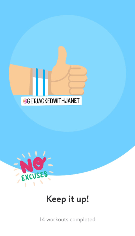 Don't forget to share your accomplishements! You have the option to share your badges and progress on Facebook and Instagram as a post or story. Don't be shy, you earned it! Be sure to tag @getjackedwithjanet to be featured!