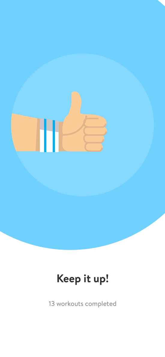 After completing a workout, you will see a badge on the next screen. This will show you your overall stats for each category.