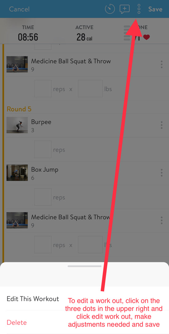 To edit a wokout, simply tap the 3 dots in the upper right, select edit workout, make edits and save.