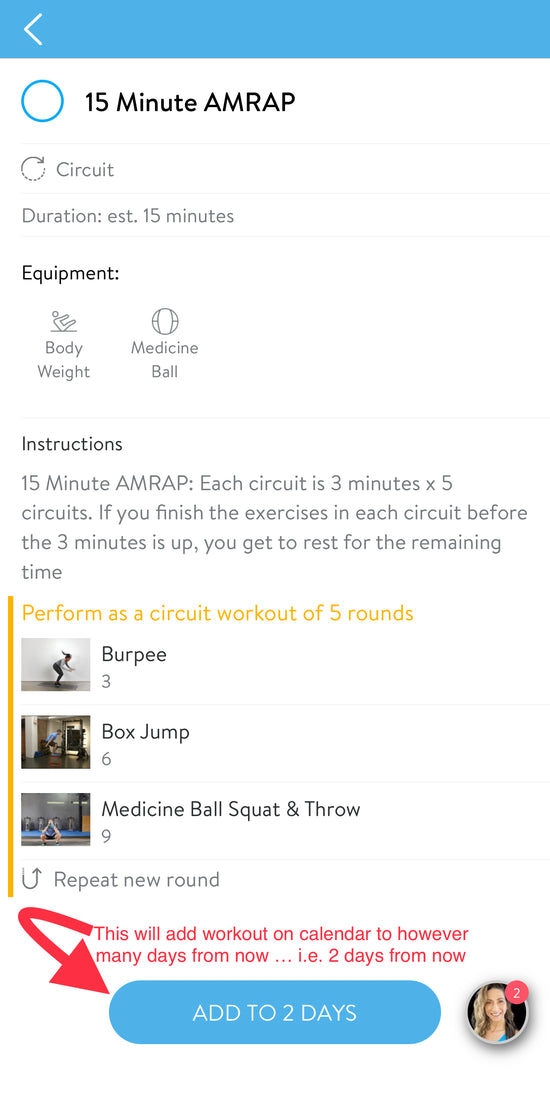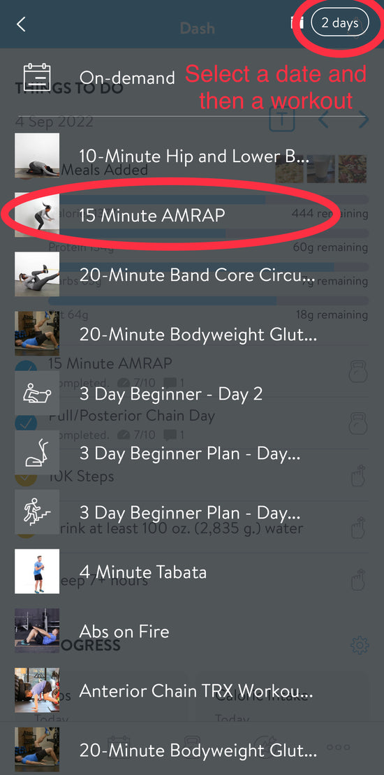 To add an on-demand workout to your calendar, first change the date to whatever desired date(s) you would like to add it to by tapping on the days option in the upper right, then tap on the workout you want to add.