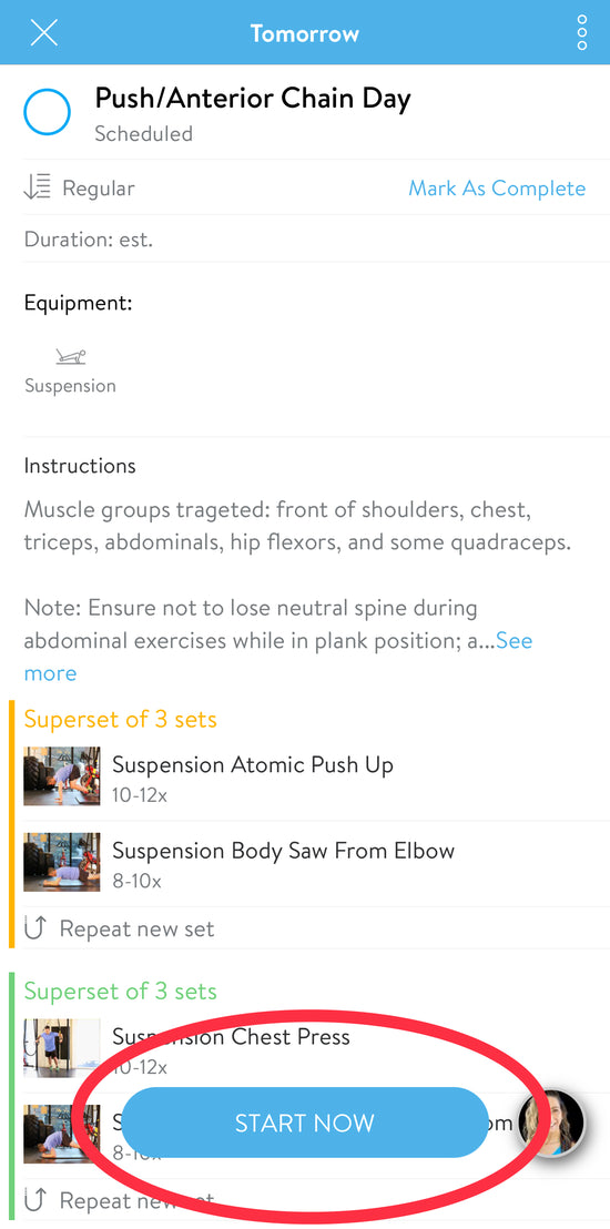 Your scheduled workouts will show up on your App dashboard. To start a workout, or mark a workout as complete, simply tap on the workout.