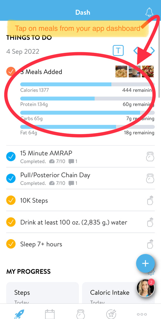 To view additional nutritional data, tap on your meals from your dashbaord.